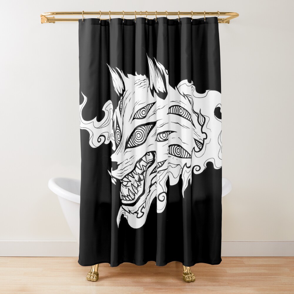 Kon Fox Demon Chainsaw Red Line Art Shower Curtain