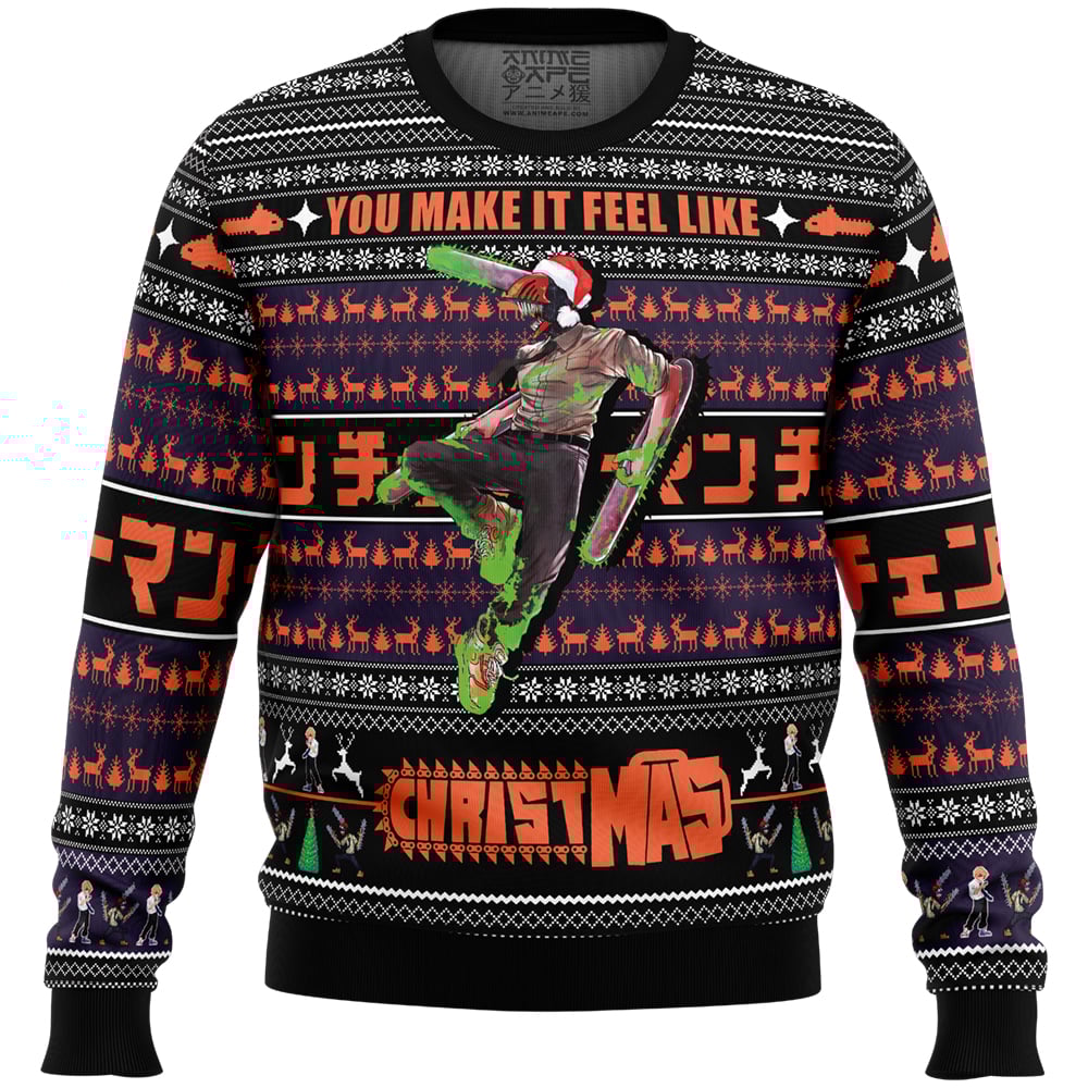 Home / Chainsaw Man Ugly Christmas Sweaters / You Make It Feel Like Christmas Chainsaw Man Ugly Christmas Sweater